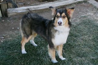 Zadie is about 10 months old, an Australian Shepherd-Husky mix. She weighs in at 35 pounds and is about 19″ tall at the withers.
