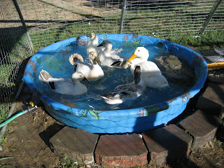 We have completed the exterior of the duck house and painted it. The ducks pretty much have their daily routine. They are locked inside their house at night, let out to their paddock for breakfast and a morning swim. The cat gets to go outside at this time, while the