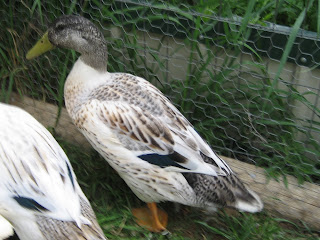 The ducks are now 17 weeks old. They are now looking like adults, with the most obvious difference being the Welsh Harlequin drake, with his pretty green head and black butt and curly tail. He’s quite handsome! Whitey also now has his curly tail, and must weigh twice as much as the others. I haven’t weighed him, but he’s awfully heavy in comparison to everyone else. The girls aren’t very different from the last photo I posted, but I’ll post a couple with them anyway.
