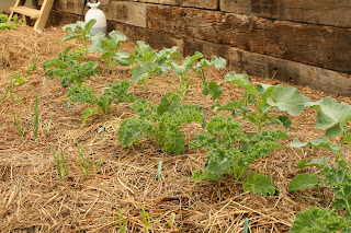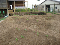 Tim completed the bed for the Three Sisters (corn, pole beans, squash), and I planted it this morning before it began to rain. We have found a few different suggestions about how to plant this combination, so we’re experimenting with a few different options.
