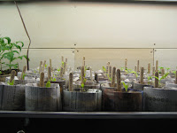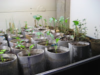 I made some more soil blocks and started a few new seeds, some for things I hadn’t started yet (sage, summer savory), a few more tomatoes for a later season harvest, some more spinach (some of the ones I’d started never germinated–this way I’ll have a few more to harvest later on, some more endive and lettuce, and some sweet peas. At least I’m being smarter and not planting too many of any one thing all at once. Next year I’ll know better right from the start.