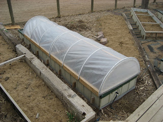 Thanks for the question about construction. It’s good to know someone is reading this! We (or rather, Tim) built a new cold frame top, to be added to the other one, expanding the size. All of these frames are made to fit our framed beds, which are the same width, 3.5 feet. The beds were framed with barn siding material, just because we had some on hand and we wanted to use what we had.